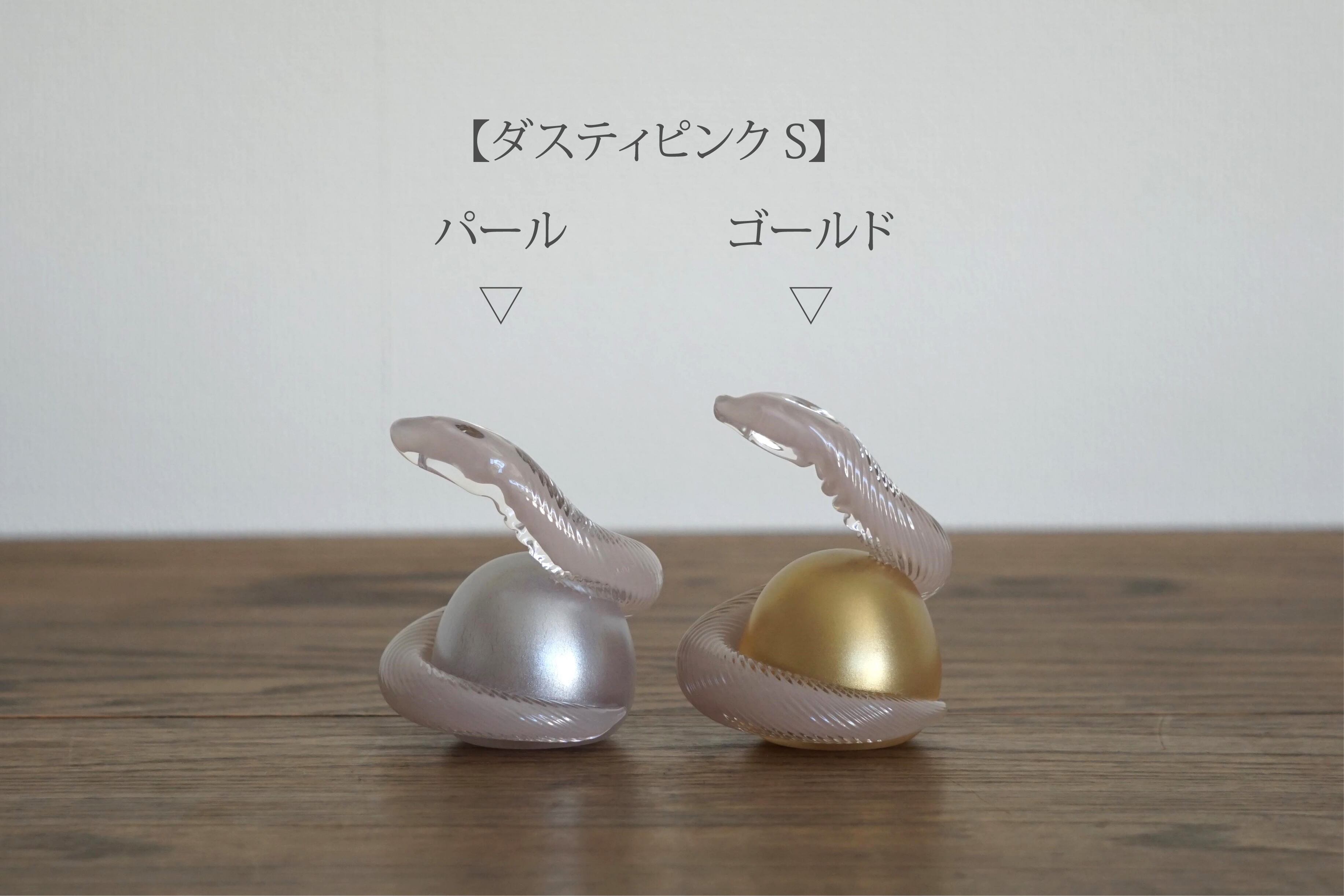 *着色に使うガラスパウダーは天然の鉱物を原料に使用しており、不純物や色抜け、小泡などが入る事がありますが不良品ではありません。また宝珠のゴールド、パールは表面がひび割れた状態になる部分がありますが、制作時の柔らかなガラスによるものですので、作品の特徴としてお楽しみください。